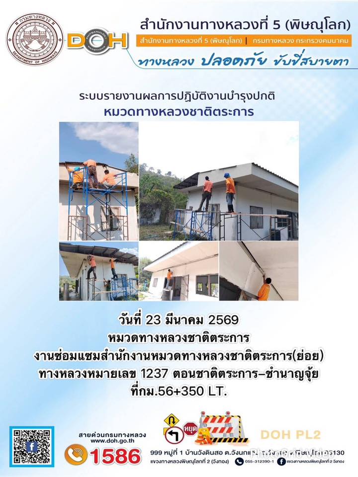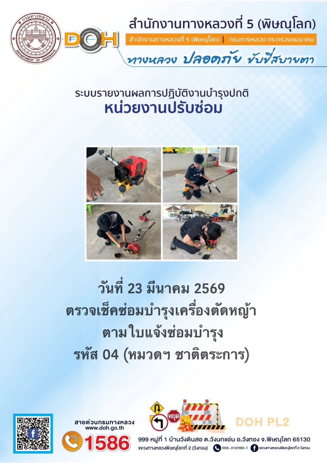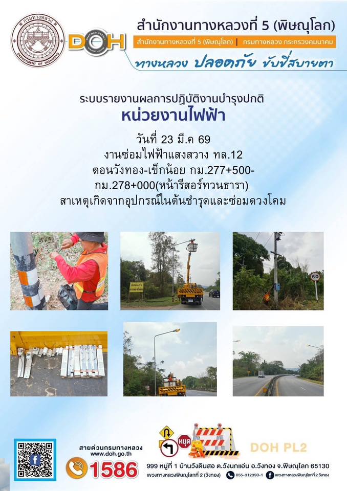 การปฏิบัติงานของ หมวดทางหลวง และ หน่วยงานในสังกัด เพื่ออำนวยความสะดวก และปลอดภัยให้กับประชาชนผู้ใช้เส้นทาง ประจำวันจันทร์ ที่ 23 มีนาคม 2569
