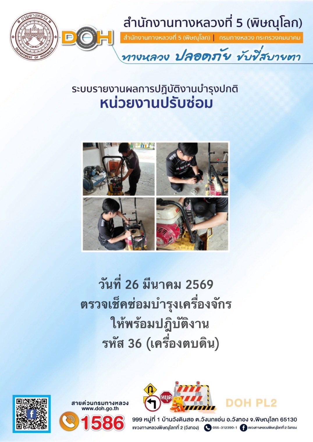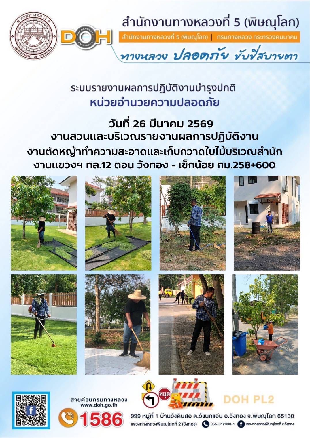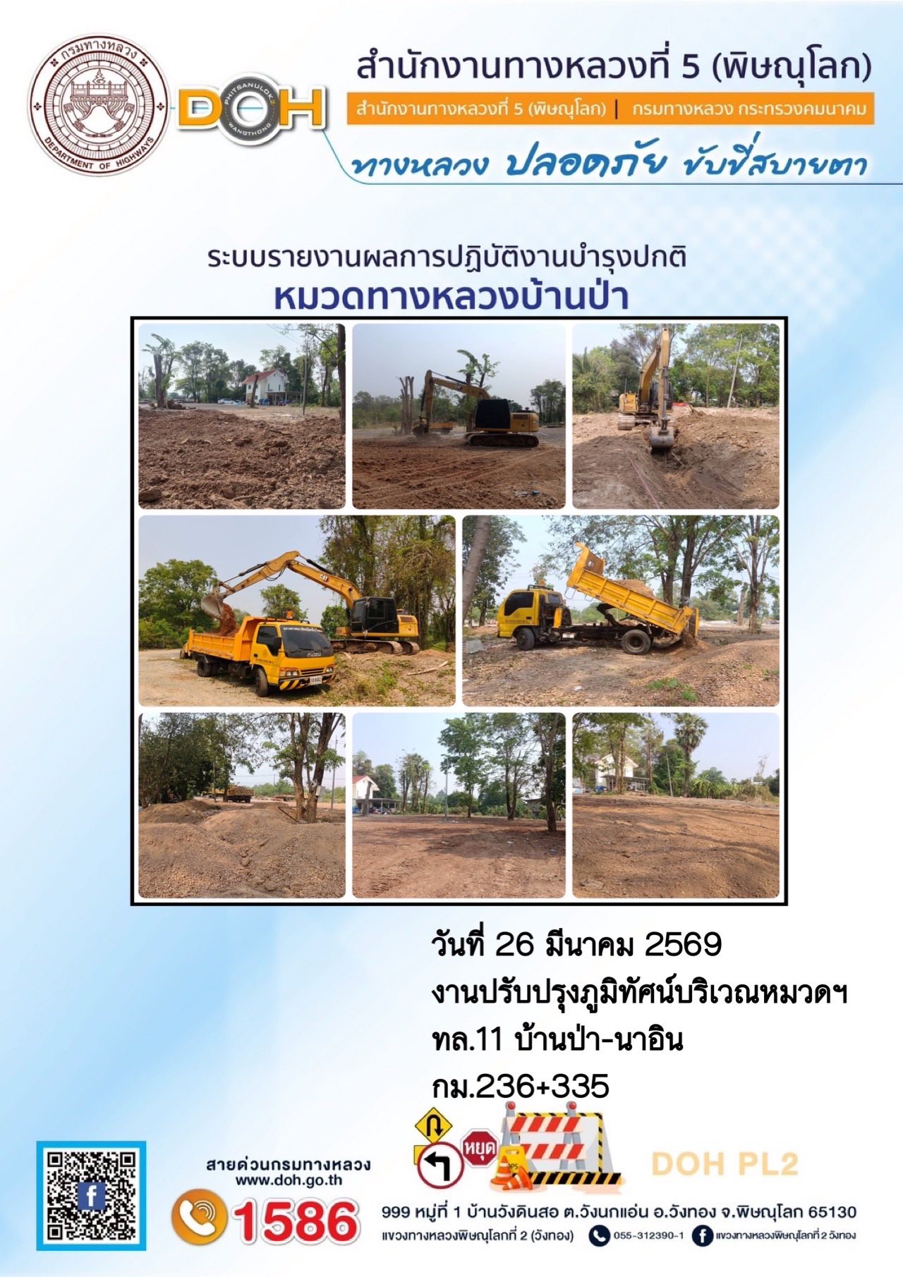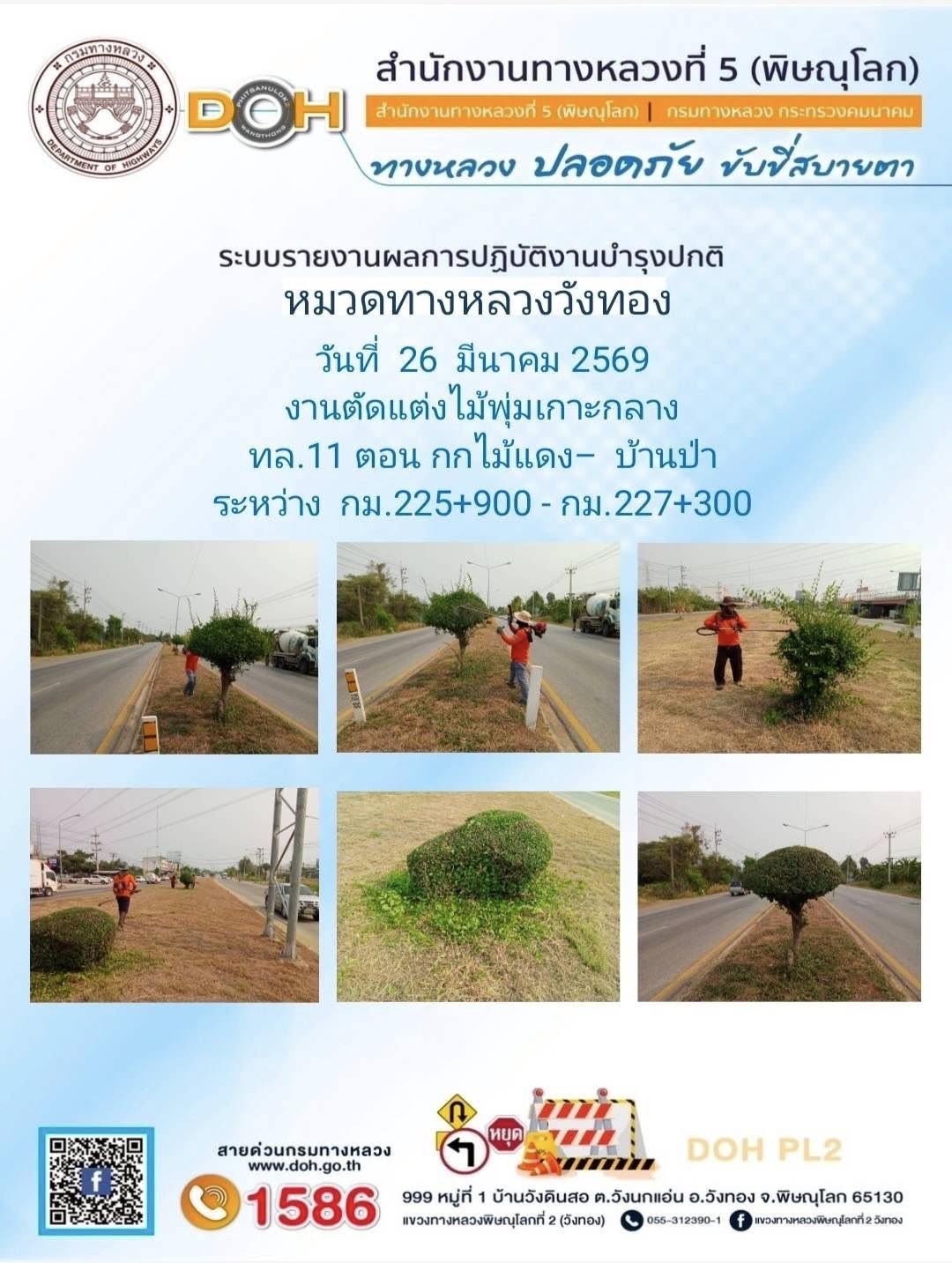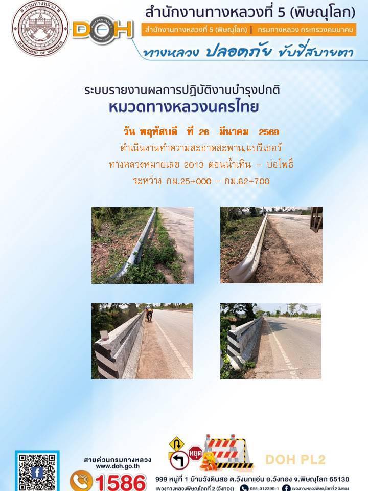 การปฏิบัติงานของ หมวดทางหลวง และ หน่วยงานในสังกัด เพื่ออำนวยความสะดวก และปลอดภัยให้กับประชาชนผู้ใช้เส้นทาง ประจำวันพฤหัสบดี ที่ 26 มีนาคม 2569