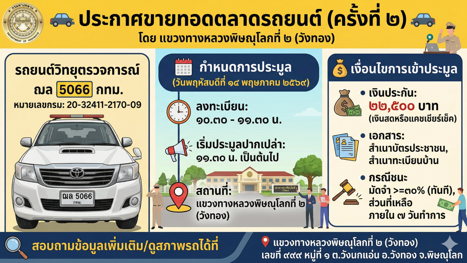 ข้อมูลข่าว : ประกาศ เรื่อง การขายทอดตลาดรถราชการ จำนวน 1 คัน โดยวิธีขายทอดตลาด