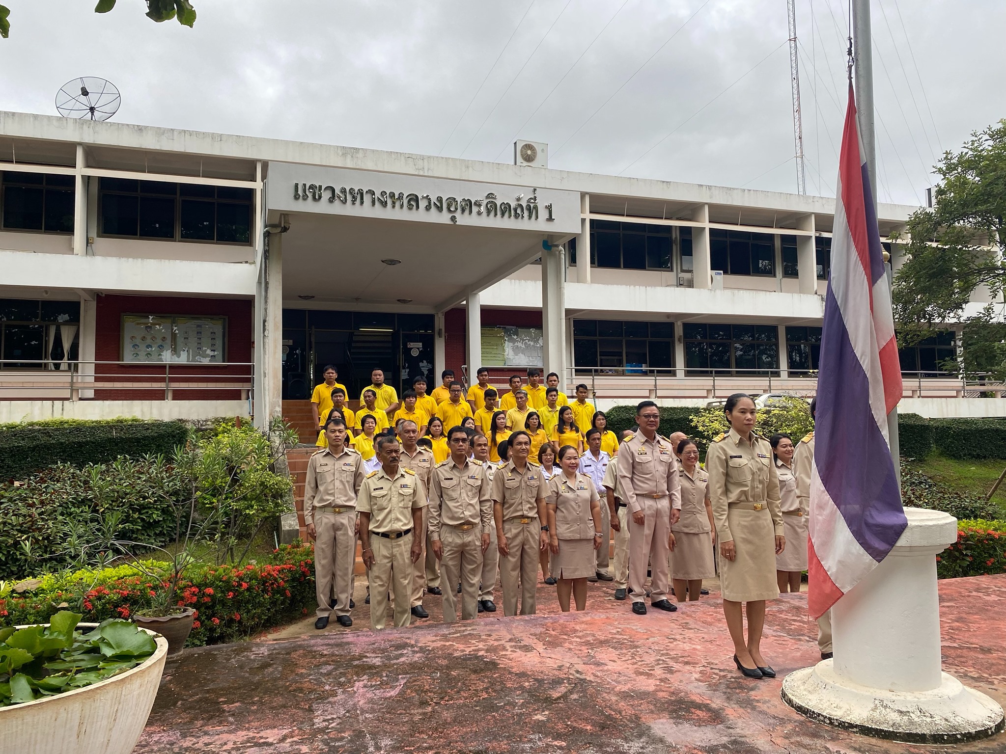 ร่วมร้องเพลงและเคารพธงชาติ เนื่องในวันพระราชทานธงชาติไทย ณ แขวงทางหลวงอุตรดิตถ์ที่ 1