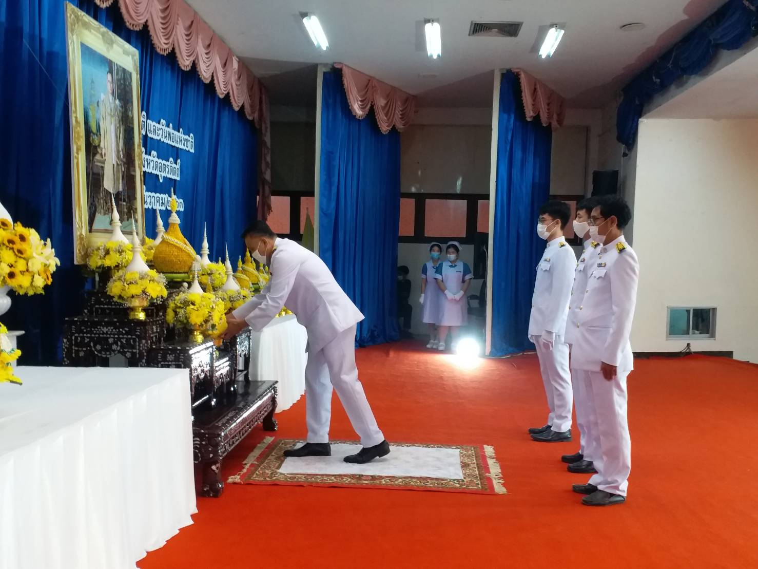 ร่วมกิจกรรมพิธีวางพานพุ่มและถวายบังคม เนื่องในวันคล้ายวันพระบรมราชสมภพ พระบาทสมเด็จพระบรมชนกาธิเบศร มหาภูมิพลอดุลยเดชมหาราช บรมนาถบพิตร วันชาติ และวันพ่อแห่งชาติ ๕ ธันวาคม ๒๕๖๓