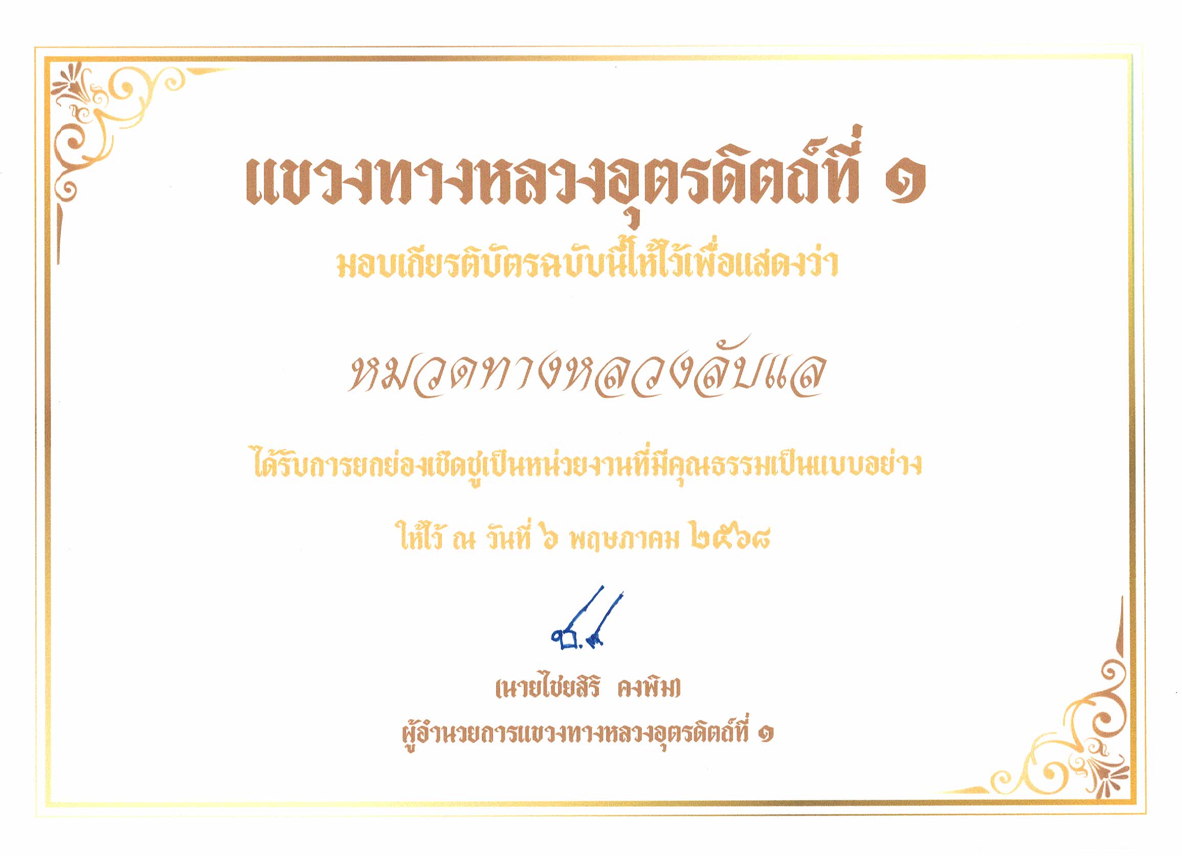 แขวงทางหลวงอุตรดิตถ์ที่ 1 มีการประกาศยกย่องเชิดชูหน่วยงานในองค์กร