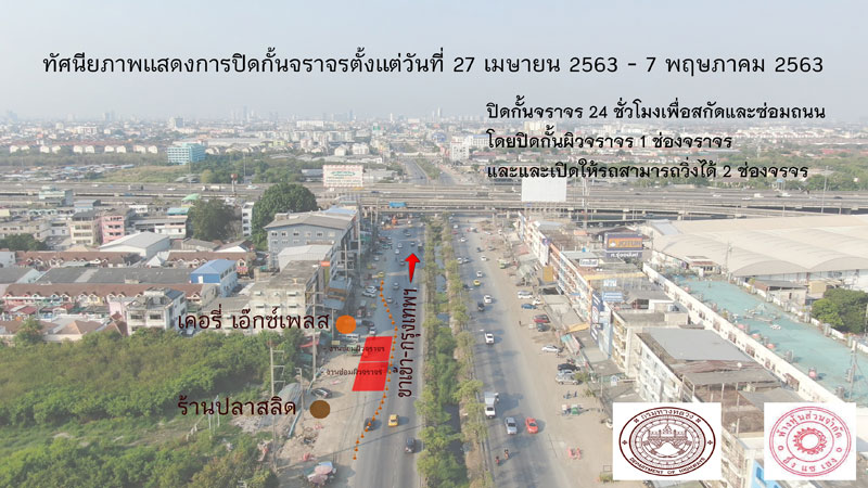 กรมทางหลวงแจ้งเบี่ยงการจราจร บน ทล.3344 กม.17 - 18 (หน้าร้าน Kerry Express) ขาเข้า กทม. เพื่อซ่อมแซมถนน ตั้งแต่บัดนี้ – 7 พ.ค. 63