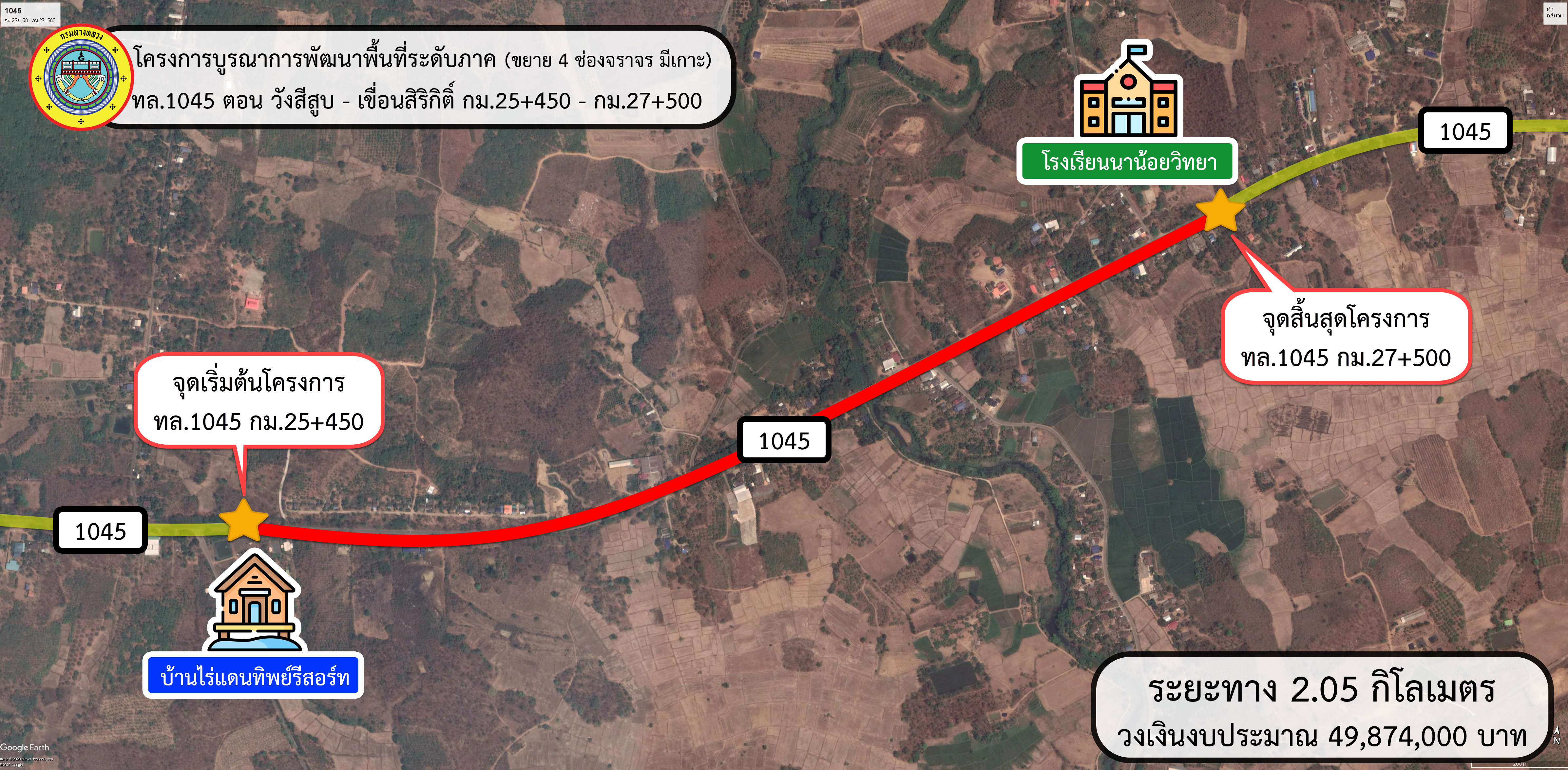 ขอเชิญเข้าร่วมประชุมการรับฟังความคิดเห็นของประชาชน ทล. 1045 กรณีโครงการก่อสร้างงานบูรณาการพัฒนาพื้นที่ระดับภาค ทล. 1045 ตอน วังสีสูบ - เขื่อนสิริกิติ์ระหว่าง กม.25+450 – กม.27+500
