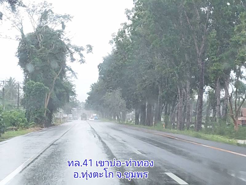 3.) ทล.4191 ช่วง ไชยา-เขาหลัก กม.2+697-3+102 ระดับน้ำสูง 5 ซม. พื้นที่ อ.ไชยา จ.สุราษฎร์ธานี