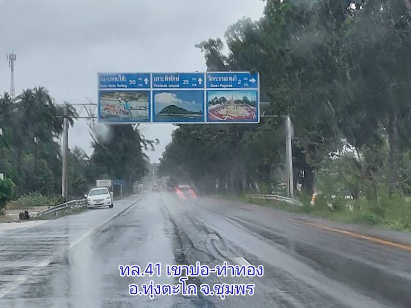 นายสราวุธ กล่าวต่อว่า ขณะนี้ในบริเวณจุดนี้ ไม่มีน้ำท่วมบนผิวทางจราจรแล้ว และได้เดินทางตรวจเส้นทางสาย 41 ถนนเพชรเกษม ไปจนถึงจังหวัดสุราษฎร์ธานี ระยะทาง 150 กิโลเมตร สภาพเส้นทางทั่วไปเป็นปกติ สามารถใช้การได้ดี ไม่มีน้ำท่วม สำหรับสภาพภูมิอากาศ ยังคงมืดครึ้ม และมีฝนตกบ้างเล็กน้อยตลอดทั้งวัน สถานการณ์โดยรวมในพื้นที่จังหวัดชุมพร และจังหวัดสุราษฎร์ธานี ดีขึ้น อย่างไรก็ตามตั้งแต่ช่วงเที่ยงของวันนี้ (14 พ.ย. 64) ทางหลวงสายหลักลงสู่ภาคใต้ และสายหลักสู่ทุกภาคทั่วประเทศ เข้าสู่ภาวะปกติ สามารถเดินทางได้ทุกเส้นทาง