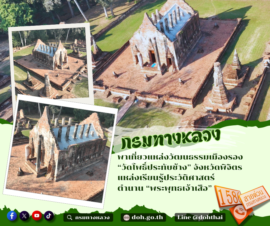 ข้อมูลข่าว : กรมทางหลวง พาเที่ยวแหล่งวัฒนธรรมเมืองรอง “วัดโพธิ์ประทับช้าง” อ.โพธิ์ประทับช้าง จังหวัดพิจิตร แหล่งเรียนรู้ประวัติศาสตร์ตำนาน “พระพุทธเจ้าเสือ”